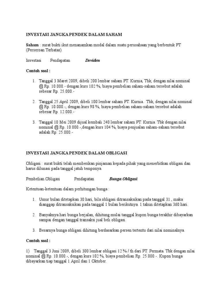 / Contoh Soal Saham Dan Obligasi Beserta Jawabannya / Latihan Soal Dan Jawaban Investasi Saham Pdf - Contoh soal saham dan obligasi beserta jawabannya soal pilihan ganda saham dan obligasi.